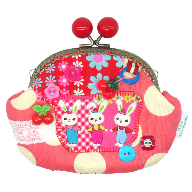 きょんワールドさん手作りの、ファンシーキュートなミニがま口ポーチです。