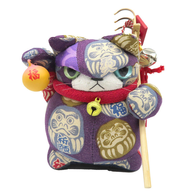 萩工房 わるねこ 熊手・鈴持ち だるま柄 座布団付き
