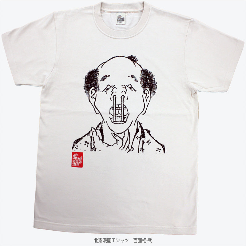 【13】北斎漫画Tシャツ 百面相 弍 ハナボウ:Lサイズ