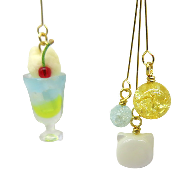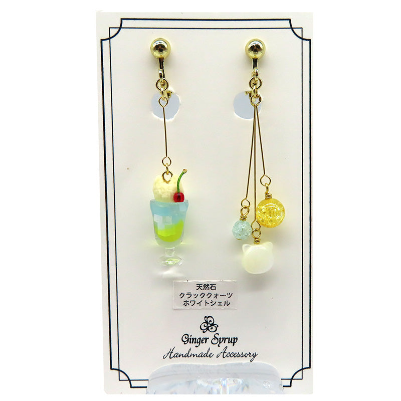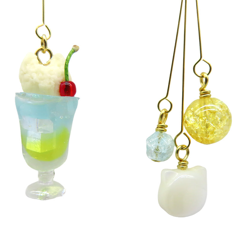 猫型クリームのソーダの耳飾り。